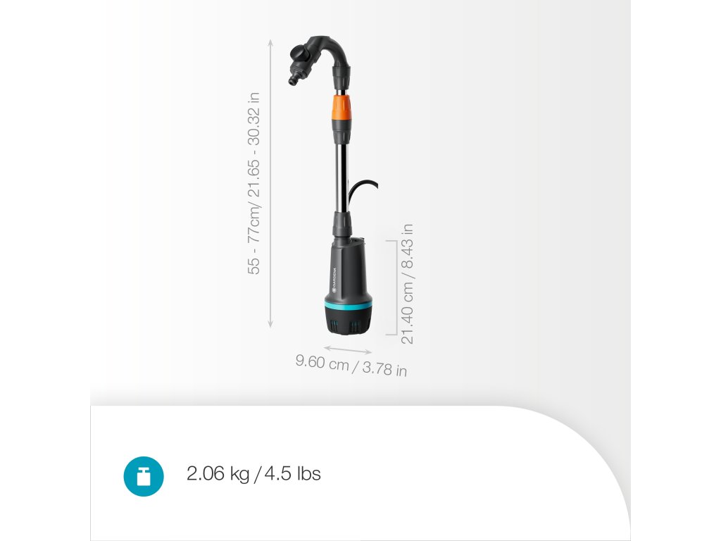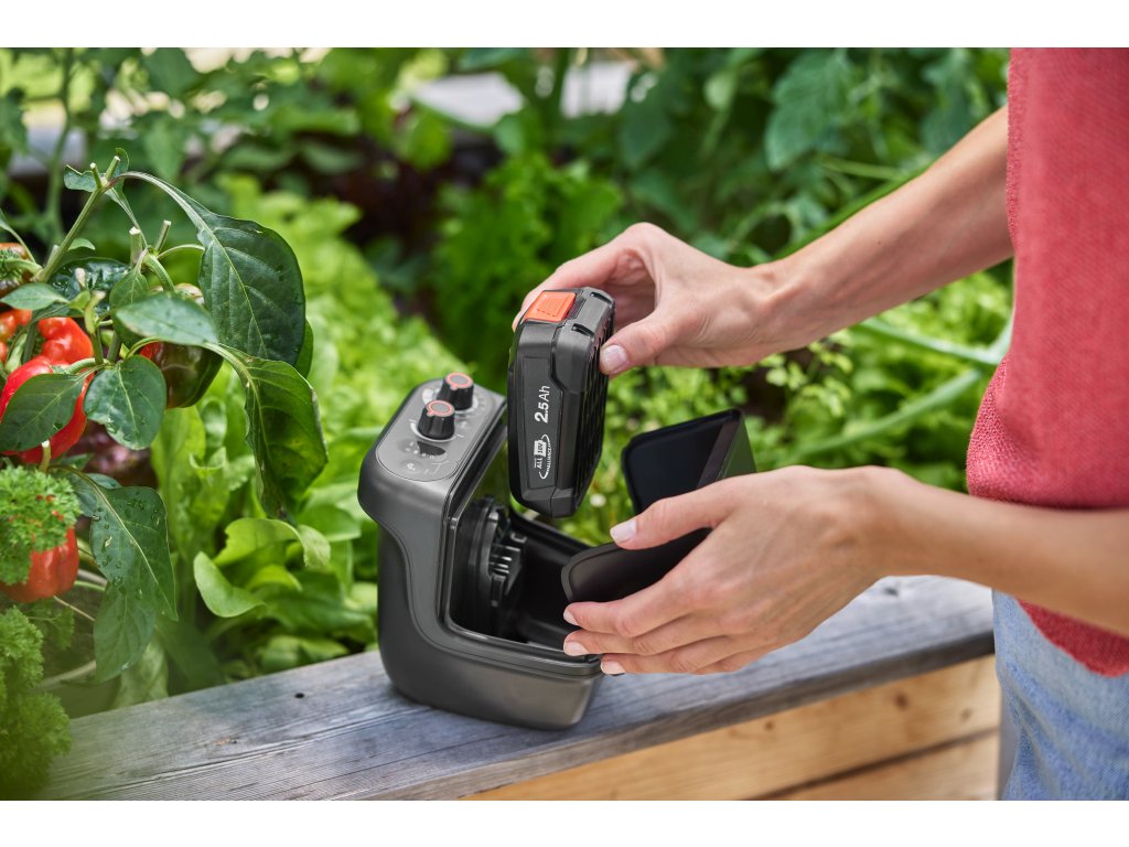 Plynulá regulace výkonu vám umožňuje kontrolovat maximální průtok 2 600 l/h. Najděte rovnováhu mezi výkonem a dobou provozu a můžete si nastavit úrovně tlaku, které vyhovují vaší zahradě. Doba provozu akumulátoru činí 27 a 75 minut při 2,5 Ah a 44 – 120 minut při 4.0 Ah.