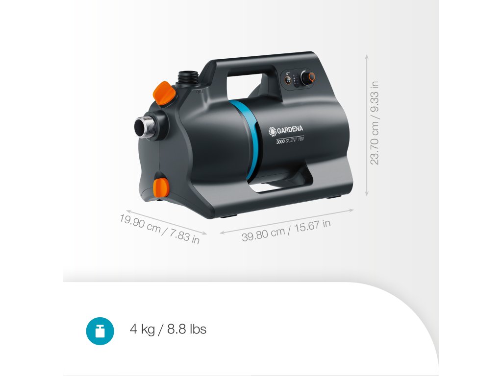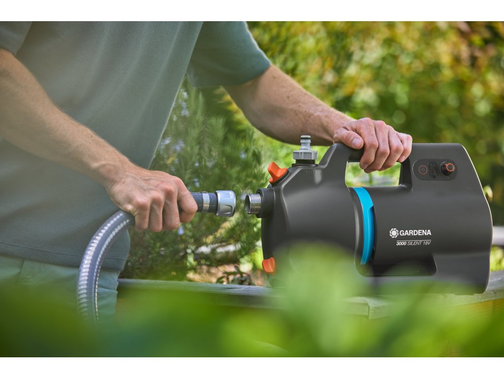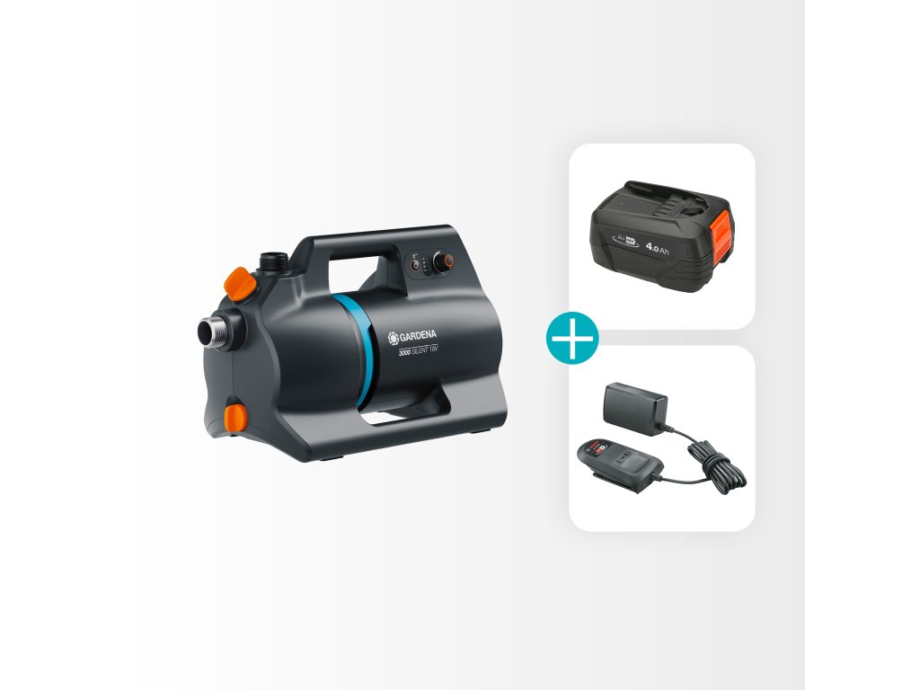 Zahradní čerpadlo 3000 18V P4A Set od společnosti GARDENA je vysoce výkonné akumulátorové čerpadlo s přiloženým akumulátorem, které lze umístit kdekoliv na zahradě. Zajišťuje spolehlivé zásobování vodou s využitím přírodních vodních zdrojů.