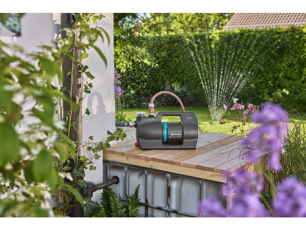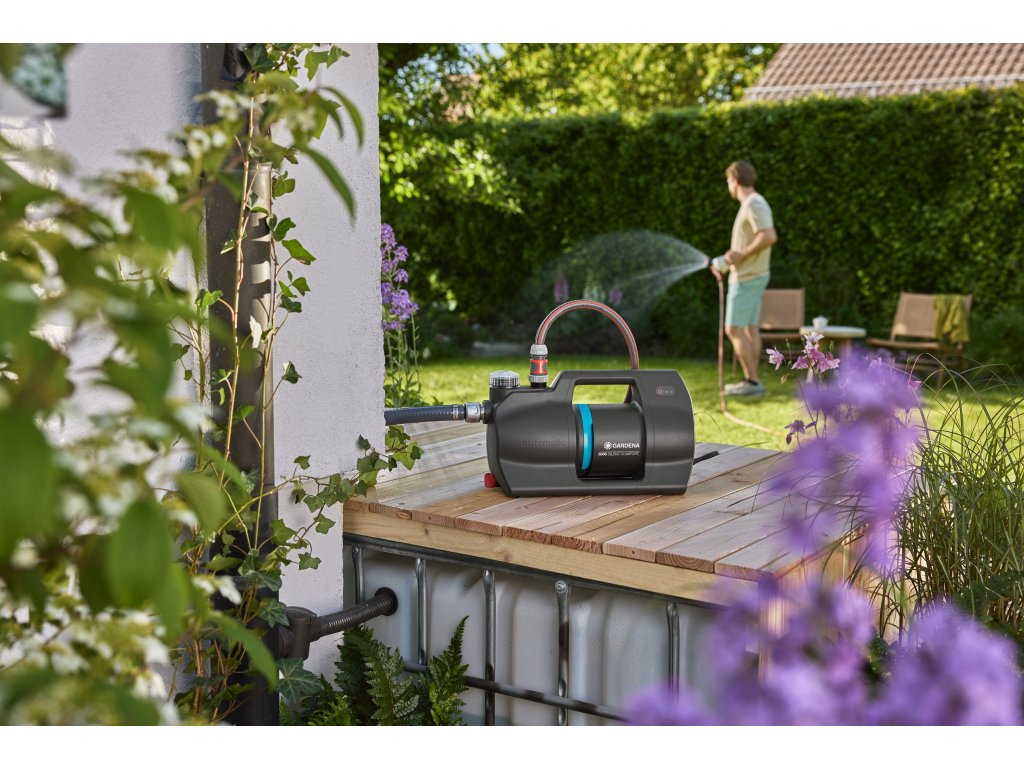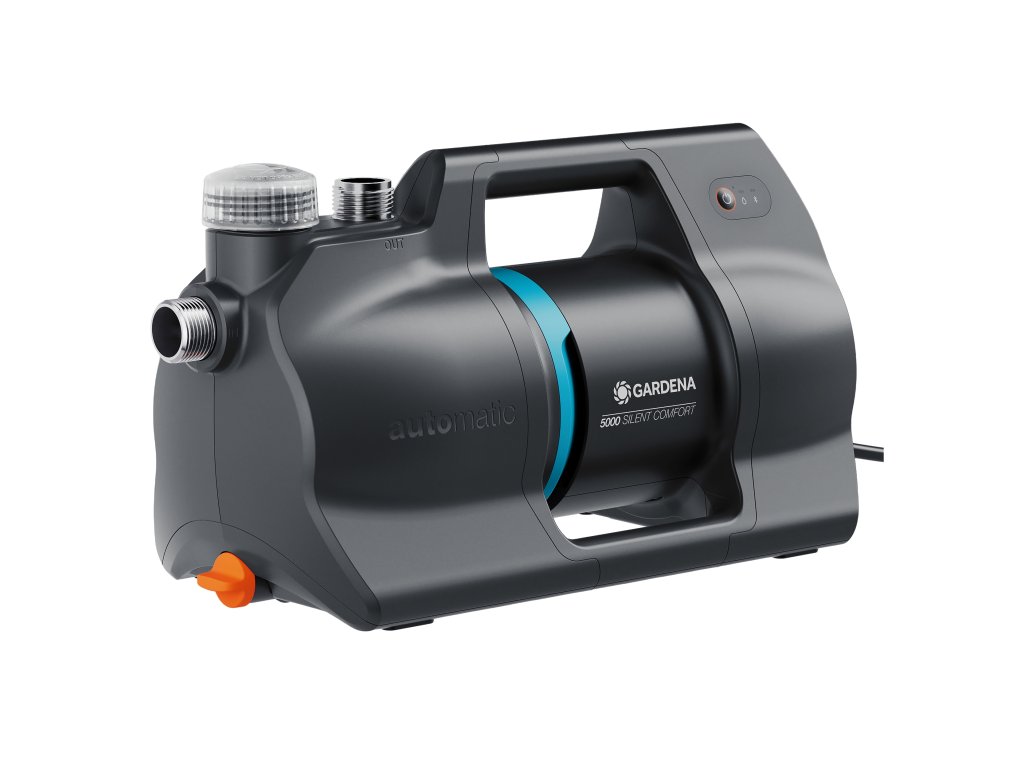 Automatické čerpadlo pro dům a zahradu 5000 SilentComfort od společnosti GARDENA je elektrické vodní čerpadlo, které se spustí v okamžiku, kdy je potřeba. Tichá technologie znamená, že vnitřní i venkovní čerpadlo dokáže tiše a spolehlivě dodávat vodu pro čištění a zavlažování.