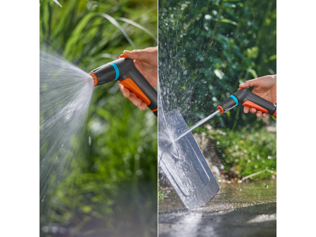 Čisticí postřikovač Classic jako startovací sada byl navržen tak, aby vám pomohl s prováděním základních zavlažovacích a čisticích úkonů na zahradě. Díky dvěma odlišným režimům postřiku pro různé aplikace, ať už se jedná o zavlažování záhonů nebo čištění terasy, si postřikovač se zavlažováním snadno poradí. Mezi režimy postřiku můžete plynule přepínat.