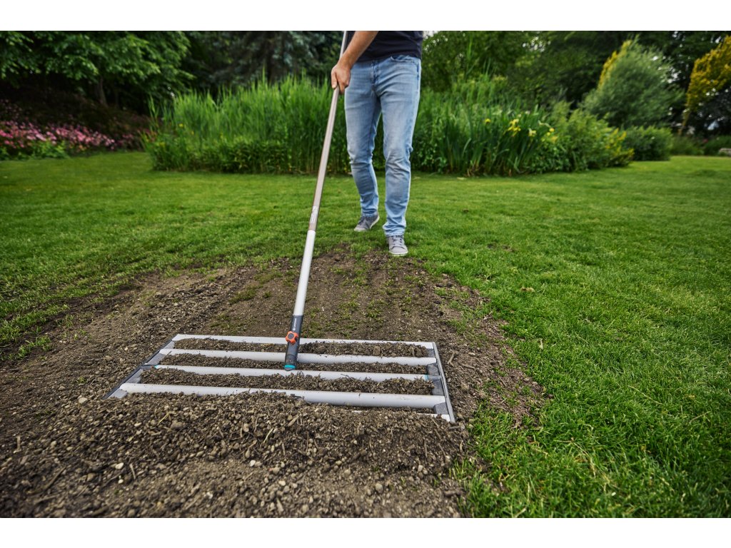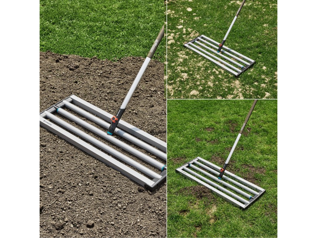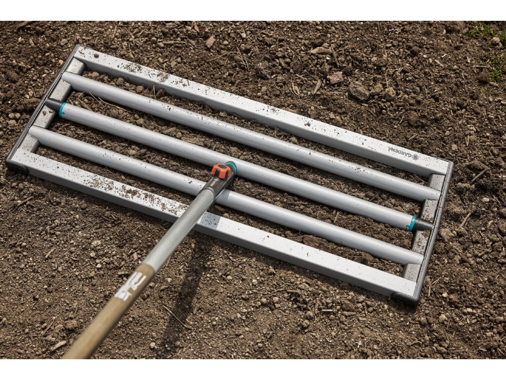 Přesun velkého množství materiálu na velké ploše může vyžadovat velkou sílu. Kvalitní ocel použitá pro nivelační bránu GARDENA zajišťuje spolehlivé a efektivní distribuci zeminy a písku.