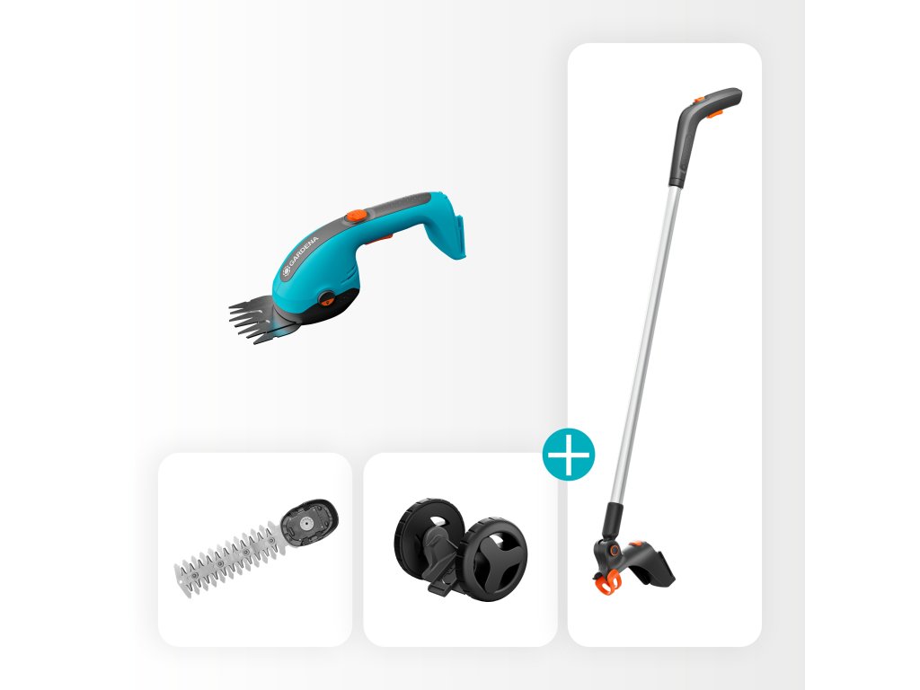- Obsah : 1x nůžky na trávu s noži na trávu, keře, násadou a kolečky
