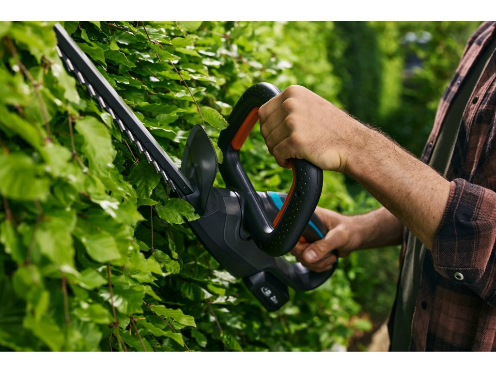 Nůžky na živý plot disponují speciálně navrženou ergonomickou rukojetí s kruhovým tvarem. Ta umožňuje držet akumulátorové nůžky v různých polohách, což snižuje namáhání a únavu. Rukojeť také usnadňuje pohyb v zarostlých oblastech a nalezení správného úhlu při stříhání rovných nebo křivých živých plotů.