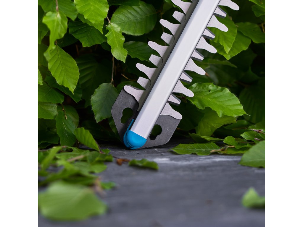 Integrovaný chránič špičky nožů pomáhá předcházet poškození nožů při stříhání živých plotů a keřů v blízkosti zdí, plotů a země. Bez chrániče by se nůžky na živý plot mohly snadno promáčknout nebo otupit při náhodném kontaktu s tvrdými povrchy. Chránič prodlužuje životnost nožů a pomáhá zajistit, aby byly lehké nůžky na živý plot vždy připraveny k akci.