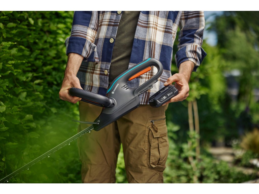 Nůžky na živý plot EasyCut 55/18V set od GARDENA jsou lehké a bezdrátové a jsou navrženy tak, aby byly ergonomické, efektivní a spolehlivé.