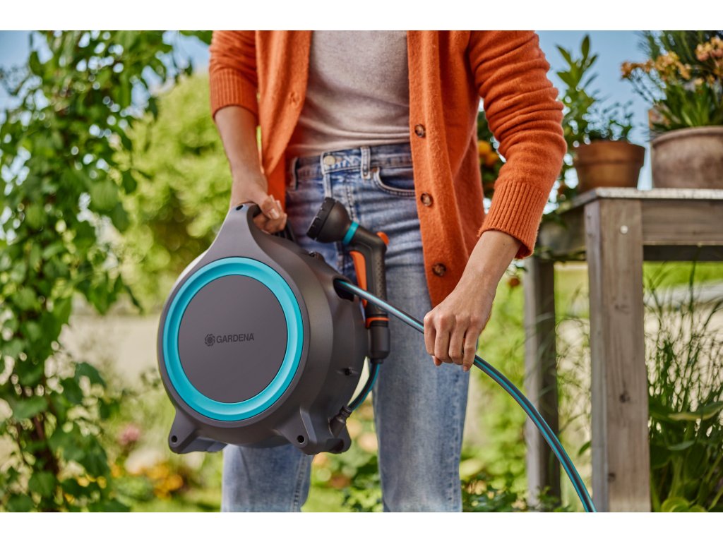 - Pro blízké okolí: Zavlažovací hadice 12,5 m se odvíjí při zavlažování malých ploch s připojovací hadicí 1,5 m.
