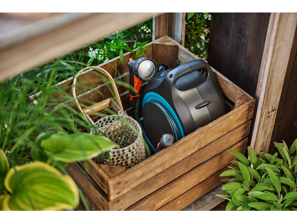 Box na hadici se skvěle hodí do malých prostor, jako jsou balkony a terasy. Její 12,5m dlouhá hadice a 1,5m dlouhá připojovací hadice poskytují dobrý zavlažovací rádius. Díky odvíjení připojovací hadice za chůze lze box s hadicí snadno přenášet mezi květináči nebo záhony.