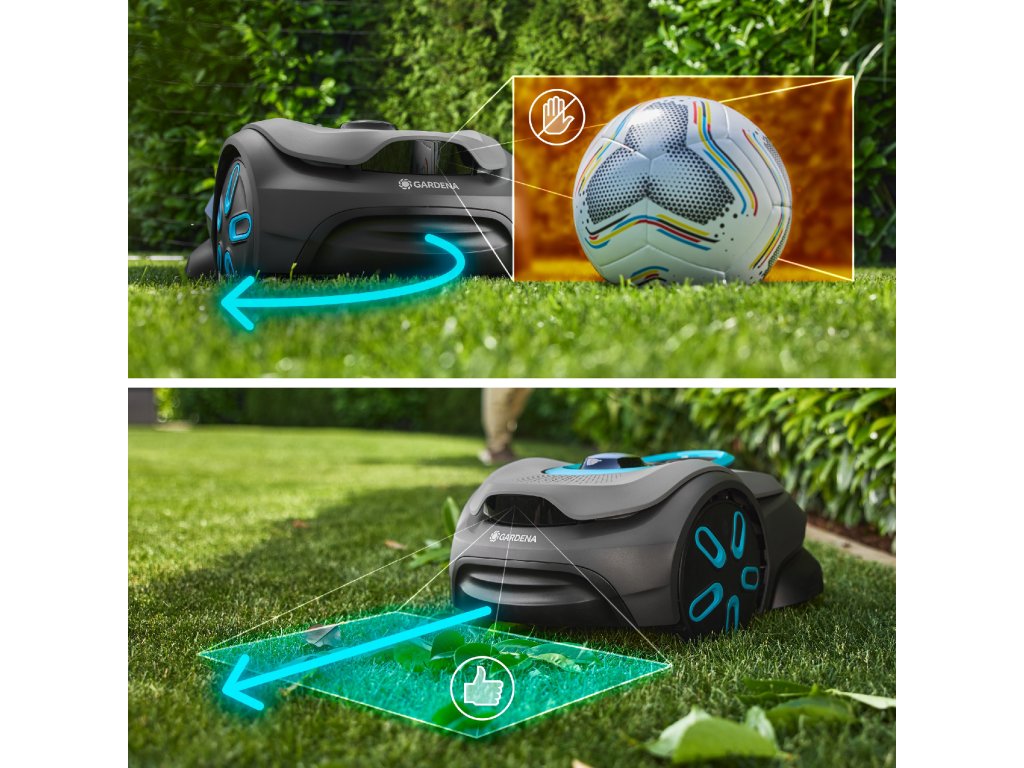 - Rozpoznání objektů: Chrání sekačku a okolí rozpoznáváním pevných předmětů, jako jsou kameny a hračky.