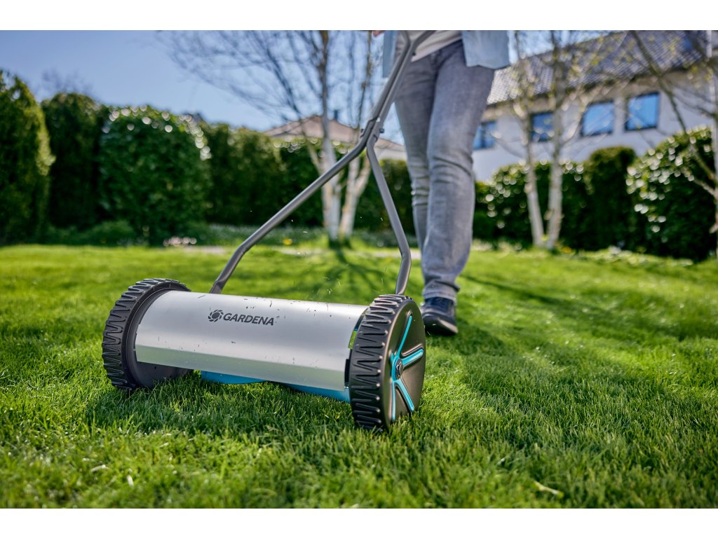 Získejte klasický vzhled anglického trávníku pomocí této lehké ruční vřetenové sekačky od společnosti GARDENA, která se snadno používá a je hned připravena k sečení.