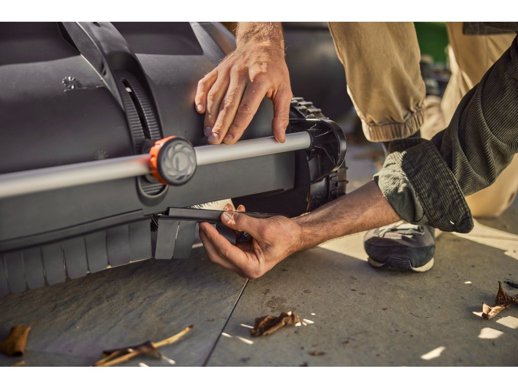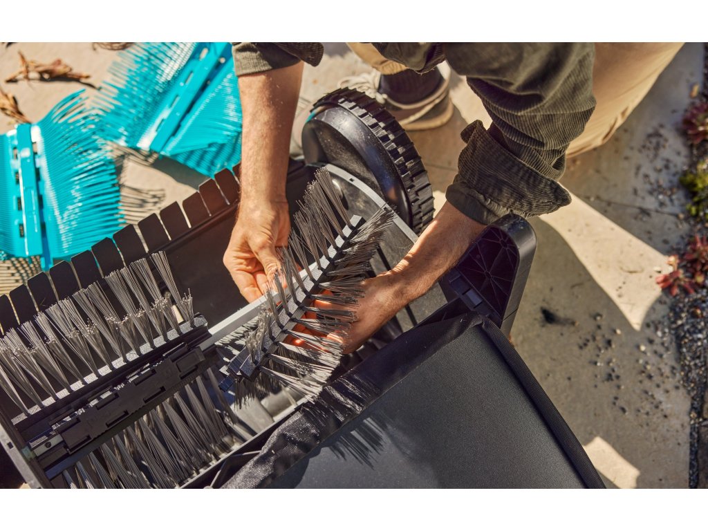 Díky zamykacímu mechanismu není k výměně kartáčů na sběrači listí potřeba žádné nářadí. Kartáče na terasu lze rychle a snadno nasadit, takže se zahrádkáři mohou ihned pustit do práce. Díky patentovanému spirálovému designu je nástavec kartáče velmi účinný při sběru listí z teras a chodníků.