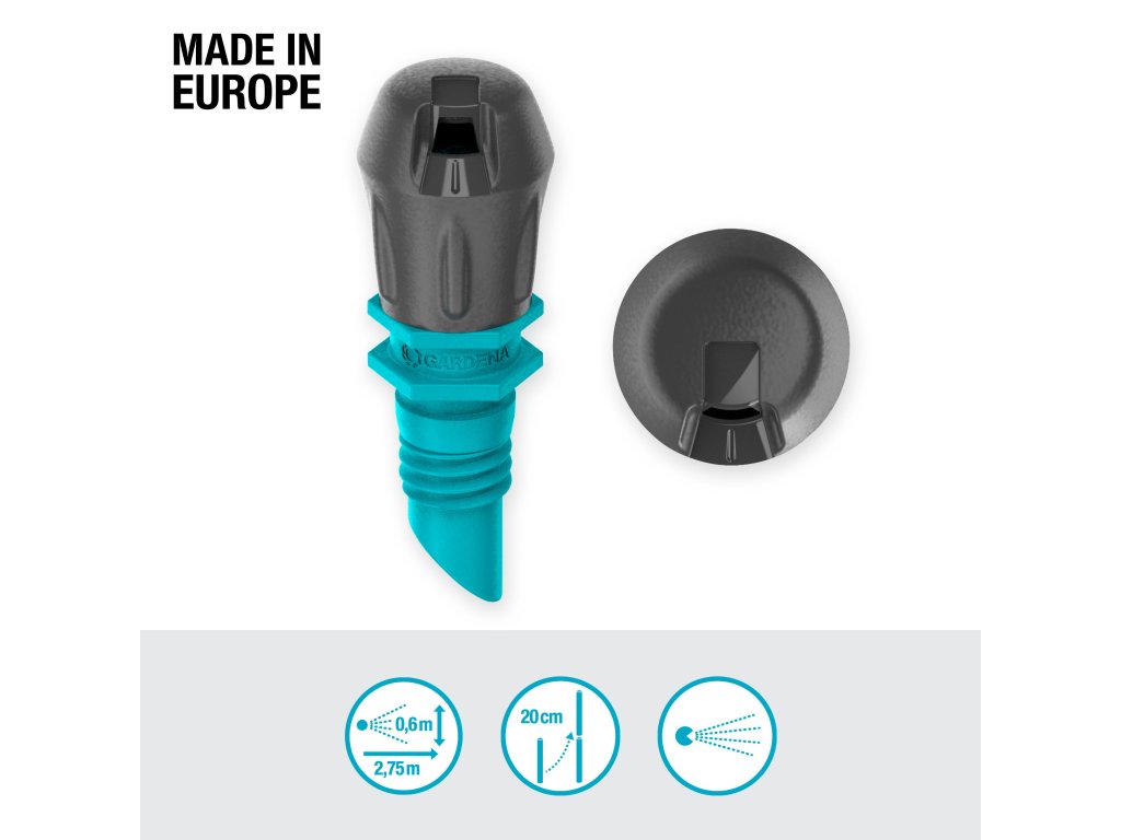 Pro zavlažování úzkých zón jemnou rozprašovací mlhou