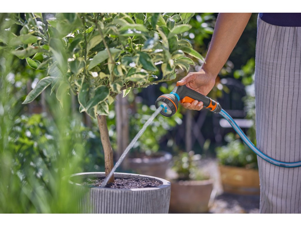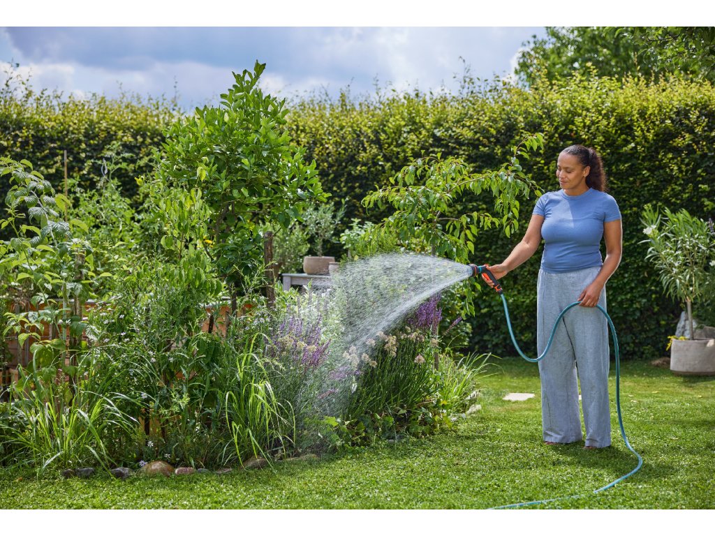 Multifunkční sprcha Classic nabízí výběr ze čtyř režimů postřiku. Kuželový proud je určen pro zavlažování choulostivých rostlin, silný proud pro čištění. Objemový proud je vhodný pro zavlažování rostlin v květináčích a jemný postřik je vhodný pro důkladné zavlažování květinových a zeleninových záhonů. Mezi režimy můžete snadno přepínat, což vám pomůže rychle a efektivně dokončit zavlažování nebo čištění.