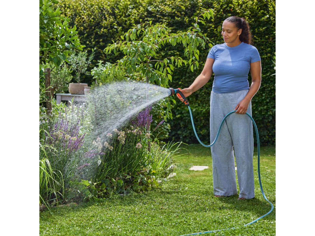 Multifunkční sprcha Classic nabízí výběr ze čtyř režimů postřiku. Kuželový proud je určen pro zavlažování choulostivých rostlin, silný proud pro čištění. Objemový proud je vhodný pro zavlažování rostlin v květináčích a jemný postřik je vhodný pro důkladné zavlažování květinových a zeleninových záhonů. Mezi režimy můžete snadno přepínat, což vám pomůže rychle a efektivně dokončit zavlažování nebo čištění.