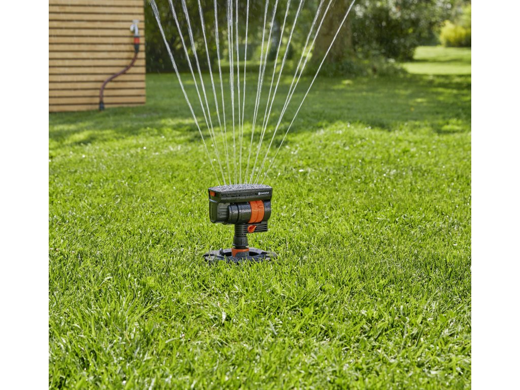 Pomocí přiloženého T-kusu můžete potrubí dokonce odbočit do dalšího směru. Dvě vodní zásuvky slouží jako praktické kohoutky, do kterých můžete připojit nejen hadici, ale také výkyvný zavlažovač. Čerpat vodu je stejně snadné jako otočení kohoutku v domácnosti. Jakmile k vodní zásuvce připojíte hadici nebo zavlažovač, vytvoří se spojení. Když hadici odpojíte, přívod vody se okamžitě přeruší díky integrovanému uzavíracímu ventilu. S výkyvným zavlažovačem zavlažíte plochu od 9 do 216 m² bez tvorby kaluží. Hlavu zavlažovače lze ručně otáčet o 360 °. Připojovací krabice a vodní zásuvky jsou vybaveny sítkem na nečistoty a zavlažovač filtrem, který lze vyjmout a snadno jej vyčistit pod tekoucí vodou.